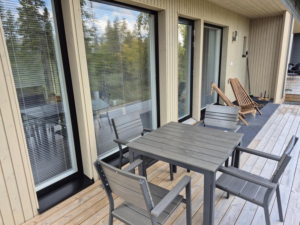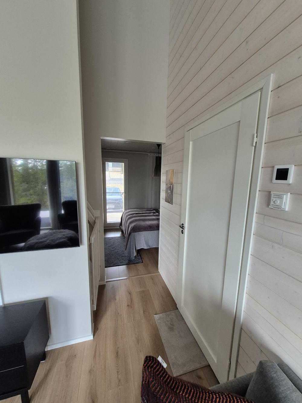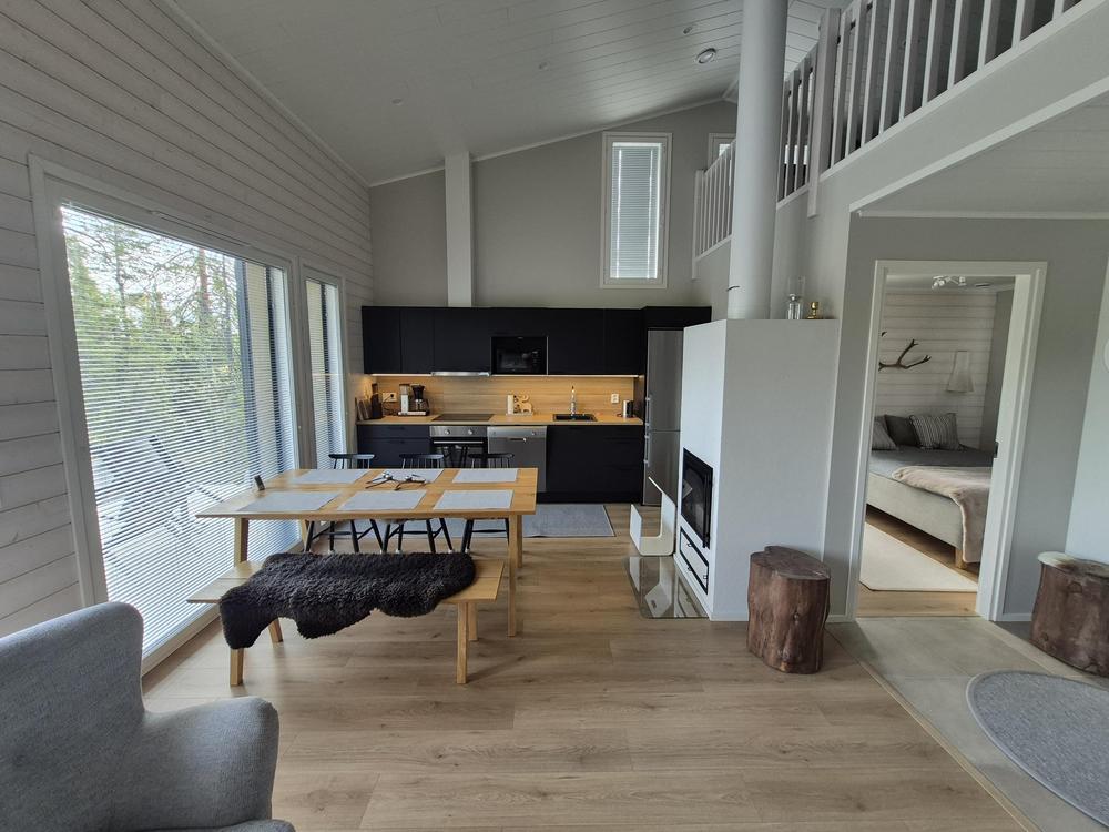 Kaksi makuuhuonetta (parisängyt), olokuone keittiö, erillinen WC, saunatilat(pyykinpesukone, wc, suihku ja sauna), terassit edessä ja takana sekä parvi, jossa 4 erillisvuodetta. Varustuksesta löytyy matkasänky pienemmille lapsille sekä yksi syöttötuoli.